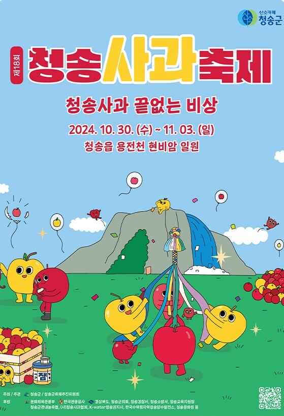경북 청송사과축제가 올해로 18회가 되었습니다. 2024년 10월 30일(수)부터 11월 3일(일)까지 5일간 개최되는 청송사과축제는 청송군의 대표 축제입니다. 올해도 화려한 행사와 다양한 체험, 볼거리를 제공합니다.